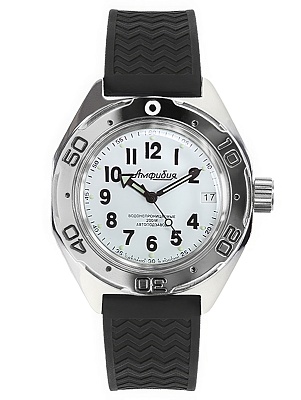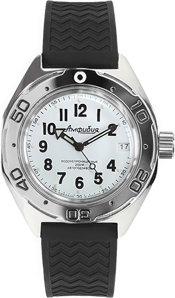 Мужские наручные часы Восток Амфибия 67070Б. Механические с ручным подзаводом. Полимерный ремешок. Натуральный полимерный материал является идеальным для изготовления ремешка благодаря своей чрезвычайной прочности и гибкости. Ударопрочная конструкция часов защищает от ударов и вибрации. Браслет из нержавеющей стали. Органическое стекло. Часы являются водонепроницаемыми до 20 Бар. Цвет циферблата: Серебристый. Цвет корпуса: Белый. На стрелки и отметки нанесен светонакопительный состав, благодаря этому считывать информацию с циферблата возможно и в темноте. Толщина: 15 мм. Гарантия: 1 год.