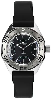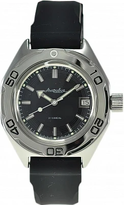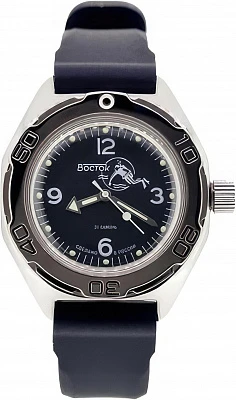 Мужские наручные часы Восток Амфибия 670921. Механические с автоподзаводом. Пружина механизма заводится автоматически благодаря естественным движениям владельца в процессе ежедневной носки часов. На стрелки и отметки нанесен светонакопительный состав, благодаря этому считывать информацию с циферблата возможно и в темноте. Полимерный ремешок. Натуральный полимерный материал является идеальным для изготовления ремешка благодаря своей чрезвычайной прочности и гибкости. Корпус изготовлен из высококачественной нержавеющей стали 316L с высокими антикоррозийными свойствами. Органическое стекло. Часы являются водонепроницаемыми до 20 Бар. Цвет корпуса: Черный. Цвет циферблата: Синий. Толщина: 10 мм. Гарантия: 1 год.