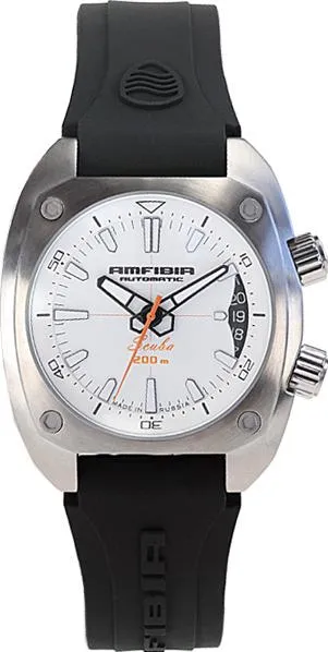 Мужские наручные часы Восток Амфибия 070799. Механические с автоподзаводом. Пружина механизма заводится автоматически благодаря естественным движениям владельца в процессе ежедневной носки часов. Корпус изготовлен из высококачественной нержавеющей стали 316L с высокими антикоррозийными свойствами. На стрелки и отметки нанесен светонакопительный состав, благодаря этому считывать информацию с циферблата возможно и в темноте. На циферблате отображается текущее число месяца. Ремешок изготовлен из каучука. Прочное, устойчивое к царапинам минеральное стекло защищает часы от повреждений. Часы являются водонепроницаемыми до 20 Бар. Ширина (с заводной головкой): 41мм. Толщина: 13мм. Гарантия: 1 год.