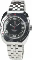 Мужские наручные часы Восток Амфибия 710394. Механические с автоподзаводом. Пружина механизма заводится автоматически благодаря естественным движениям владельца в процессе ежедневной носки часов. Корпус изготовлен из высококачественной нержавеющей стали 316L с высокими антикоррозийными свойствами. На стрелки и отметки нанесен светонакопительный состав, благодаря этому считывать информацию с циферблата возможно и в темноте. На циферблате отображается текущее число месяца. Браслет из нержавеющей стали. Органическое стекло. Часы являются водонепроницаемыми до 20 Бар. Цвет корпуса: Черный. Цвет циферблата: Синий. Ширина (с заводной головкой): 42мм. Толщина: 12мм. Гарантия: 1 год.