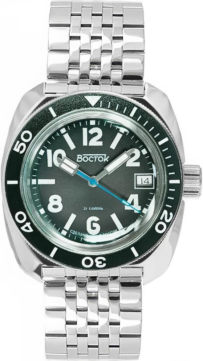 Мужские наручные часы Восток Амфибия 71052В. Механические с ручным подзаводом. Браслет из нержавеющей стали. Ударопрочная конструкция часов защищает от ударов и вибрации. Браслет из нержавеющей стали. Органическое стекло. На циферблате отображается текущее число месяца. Часы являются водонепроницаемыми до 20 Бар. Цвет циферблата: Черный. Цвет корпуса: Черный. На стрелки и отметки нанесен светонакопительный состав, благодаря этому считывать информацию с циферблата возможно и в темноте. Высота (с ушками): 46 мм. Толщина: 15 мм. Гарантия: 1 год.