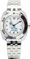 Мужские наручные часы Восток Амфибия 710615. Механические с автоподзаводом. Пружина механизма заводится автоматически благодаря естественным движениям владельца в процессе ежедневной носки часов. Корпус изготовлен из высококачественной нержавеющей стали 316L с высокими антикоррозийными свойствами. На стрелки и отметки нанесен светонакопительный состав, благодаря этому считывать информацию с циферблата возможно и в темноте. На циферблате отображается текущее число месяца. Браслет из нержавеющей стали. Органическое стекло. Часы являются водонепроницаемыми до 20 Бар. Цвет корпуса: Белый. Цвет циферблата: Белый. Ширина (с заводной головкой): 42мм. Толщина: 12мм. Гарантия: 1 год.