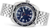 Мужские наручные часы Восток Амфибия 71068A. Механические с ручным подзаводом. Браслет из нержавеющей стали. Браслет из нержавеющей стали. Органическое стекло. Часы являются водонепроницаемыми до 20 Бар. Цвет циферблата: Серебристый. Цвет циферблата: Черный. Цвет корпуса: Синий. На стрелки и отметки нанесен светонакопительный состав, благодаря этому считывать информацию с циферблата возможно и в темноте. Толщина: 15 мм. Гарантия: 1 год.