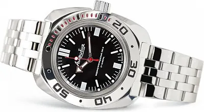 Мужские наручные часы Восток Амфибия 710971. Механические с ручным подзаводом. Браслет из нержавеющей стали. Браслет из нержавеющей стали. Органическое стекло. На циферблате отображается текущее число месяца. Часы являются водонепроницаемыми до 20 Бар. Цвет циферблата: Серебристый. Цвет корпуса: Синий. На стрелки и отметки нанесен светонакопительный состав, благодаря этому считывать информацию с циферблата возможно и в темноте. Толщина: 14 мм. Гарантия: 1 год.