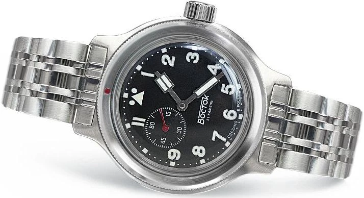 Мужские наручные часы Восток Амфибия 72094А. Механические с ручным подзаводом. Браслет из нержавеющей стали. Браслет из нержавеющей стали. Органическое стекло. Часы являются водонепроницаемыми до 20 Бар. Цвет циферблата: Серебристый. Цвет корпуса: Черный. На стрелки и отметки нанесен светонакопительный состав, благодаря этому считывать информацию с циферблата возможно и в темноте. Толщина: 12 мм. Гарантия: 1 год.