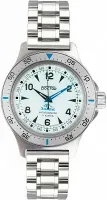 Мужские наручные часы Восток Амфибия 74043В. Механические с ручным подзаводом. Браслет из нержавеющей стали. Ударопрочная конструкция часов защищает от ударов и вибрации. Браслет из нержавеющей стали. Органическое стекло. Часы являются водонепроницаемыми до 20 Бар. Цвет циферблата: Серебристый. Цвет корпуса: Белый. На стрелки и отметки нанесен светонакопительный состав, благодаря этому считывать информацию с циферблата возможно и в темноте. Высота (с ушками): 48 мм. Толщина: 15 мм. Гарантия: 1 год.