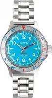 Мужские наручные часы Восток Амфибия 74044В. Механические с ручным подзаводом. Браслет из нержавеющей стали. Ударопрочная конструкция часов защищает от ударов и вибрации. Браслет из нержавеющей стали. Органическое стекло. Часы являются водонепроницаемыми до 20 Бар. Цвет циферблата: Серебристый. Цвет корпуса: Голубой. На стрелки и отметки нанесен светонакопительный состав, благодаря этому считывать информацию с циферблата возможно и в темноте. Высота (с ушками): 48 мм. Толщина: 15 мм. Гарантия: 1 год.