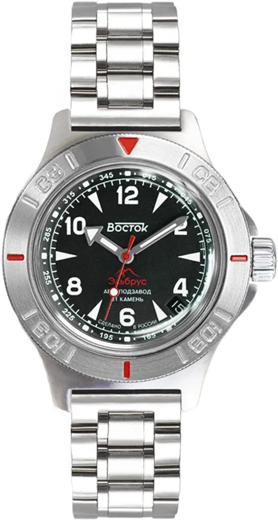 Мужские наручные часы Восток Амфибия 74092Б. Механические с ручным подзаводом. Браслет из нержавеющей стали. Ударопрочная конструкция часов защищает от ударов и вибрации. Аккумулятор обеспечивает часы достаточным питанием приблизительно на 10 лет. Браслет из нержавеющей стали. Органическое стекло. На циферблате отображается текущее число месяца. Часы являются водонепроницаемыми до 20 Бар. Цвет циферблата: Серебристый. Цвет корпуса: Черный. На стрелки и отметки нанесен светонакопительный состав, благодаря этому считывать информацию с циферблата возможно и в темноте. Высота (с ушками): 48 мм. Толщина: 15 мм. Гарантия: 1 год.