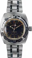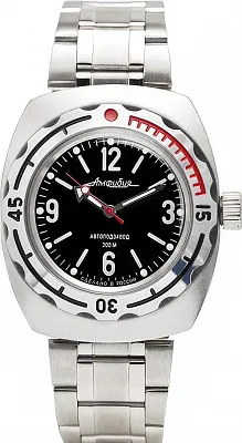 Мужские наручные часы Восток Амфибия 090679. Механические с автоподзаводом. Пружина механизма заводится автоматически благодаря естественным движениям владельца в процессе ежедневной носки часов. Корпус изготовлен из высококачественной нержавеющей стали 316L с высокими антикоррозийными свойствами. На стрелки и отметки нанесен светонакопительный состав, благодаря этому считывать информацию с циферблата возможно и в темноте. На циферблате отображается текущее число месяца. Браслет из нержавеющей стали. Органическое стекло. Часы являются водонепроницаемыми до 20 Бар. Цвет корпуса: Черный. Цвет циферблата: Черный. Ширина (с заводной головкой): 42мм. Толщина: 15мм. Гарантия: 1 год.
