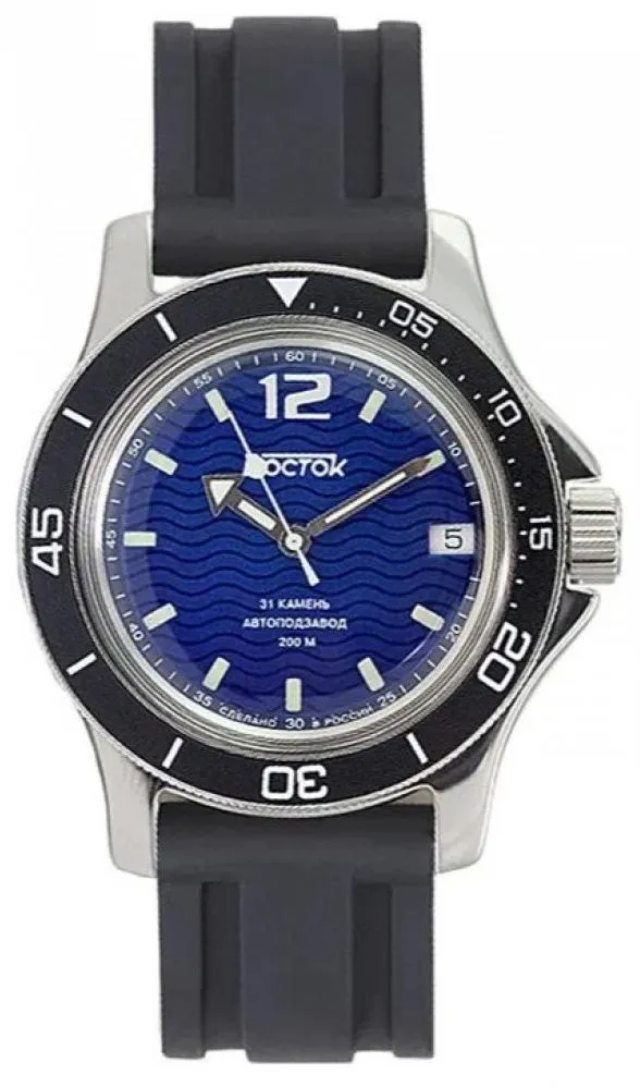 Мужские наручные часы Восток Командирские 13024А. Механические с ручным подзаводом. Полимерный ремешок. Натуральный полимерный материал является идеальным для изготовления ремешка благодаря своей чрезвычайной прочности и гибкости. Браслет из нержавеющей стали. Органическое стекло. На циферблате отображается текущее число месяца. Часы являются водонепроницаемыми до 20 Бар. Цвет циферблата: Серебристый. Цвет циферблата: Черный. Цвет корпуса: Синий. На стрелки и отметки нанесен светонакопительный состав, благодаря этому считывать информацию с циферблата возможно и в темноте. Толщина: 12 мм. Гарантия: 1 год.