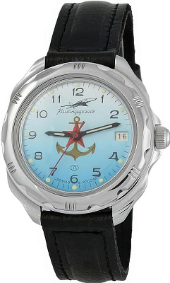 Мужские наручные часы Восток Командирские 211084. Механические с ручным подзаводом. Корпус изготовлен из высококачественной часовой латуни с высокими антикоррозийными свойствами. На стрелки и отметки нанесен светонакопительный состав, благодаря этому считывать информацию с циферблата возможно и в темноте. На циферблате отображается текущее число месяца. Ремешок изготовлен из кожи. Прочное, устойчивое к царапинам минеральное стекло защищает часы от повреждений.Часы являются водонепроницаемыми до 3 Бар. Цвет корпуса: Серый. Цвет циферблата: Голубой. Ширина (с заводной головкой): 40мм. Толщина: 10мм. Гарантия: 1 год.