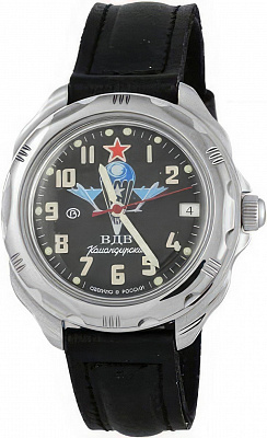 Мужские наручные часы Восток Командирские 211296. Механические с ручным подзаводом. Корпус изготовлен из высококачественной часовой латуни с высокими антикоррозийными свойствами. На стрелки и отметки нанесен светонакопительный состав, благодаря этому считывать информацию с циферблата возможно и в темноте. На циферблате отображается текущее число месяца. Ремешок изготовлен из кожи. Органическое стекло. Часы являются водонепроницаемыми до 3 Бар. Цвет циферблата: Черный. Ширина (с заводной головкой): 40мм. Толщина: 10мм. Гарантия: 1 год.