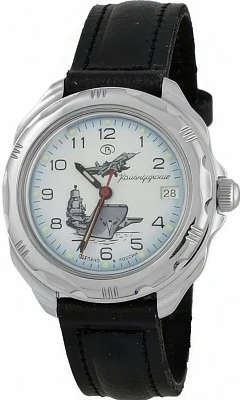 Мужские наручные часы Восток Командирские 211951. Механические с ручным подзаводом. Корпус изготовлен из высококачественной часовой латуни с высокими антикоррозийными свойствами. На стрелки и отметки нанесен светонакопительный состав, благодаря этому считывать информацию с циферблата возможно и в темноте. На циферблате отображается текущее число месяца. Ремешок изготовлен из кожи. Органическое стекло. Часы являются водонепроницаемыми до 10 Бар. Цвет циферблата: Черный. Ширина (с заводной головкой): 40мм. Толщина: 11мм. Гарантия: 1 год.