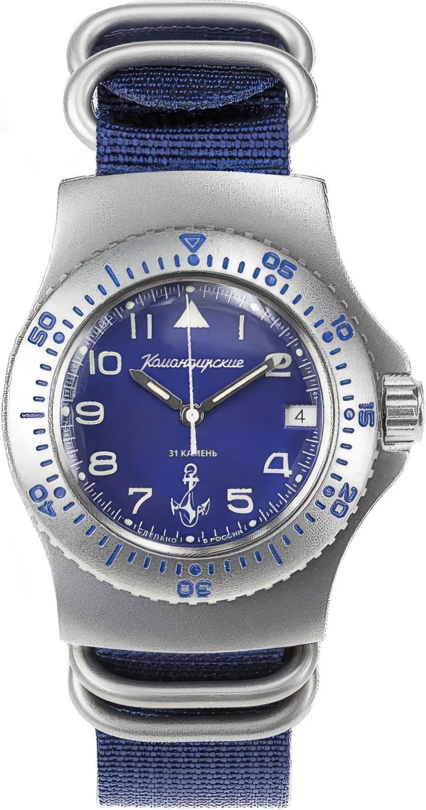 Мужские наручные часы Восток Командирские 280684. Механические с автоподзаводом. Пружина механизма заводится автоматически благодаря естественным движениям владельца в процессе ежедневной носки часов. Корпус изготовлен из высококачественной нержавеющей стали 316L с высокими антикоррозийными свойствами. На стрелки и отметки нанесен светонакопительный состав, благодаря этому считывать информацию с циферблата возможно и в темноте. На циферблате отображается текущее число месяца. Текстильный ремешок. Органическое стекло. Часы являются водонепроницаемыми до 10 Бар. Цвет корпуса: Двухцветный. Цвет циферблата: Синий. Ширина (с заводной головкой): 42мм. Толщина: 13мм. Гарантия: 1 год.
