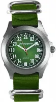 Мужские наручные часы Восток Командирские 30695В. Автоматические с ручным подзаводом. Пружина механизма заводится автоматически благодаря естественным движениям владельца в процессе ежедневной носки часов. Также есть возможность ручного завода. Текстильный ремешок. В отличие от кожаных ремешков, текстильный более устойчив к воздействию влаги и пота, не теряя своих свойств. Корпус изготовлен из высококачественной часовой латуни с высокими антикоррозийными свойствами. Прочное, устойчивое к царапинам минеральное стекло защищает часы от повреждений. Часы являются водонепроницаемыми до 3 Бар. Цвет корпуса: Серебристый. Цвет циферблата: Зеленый. Высота (с ушками): 46.7 мм. Толщина: 12.5 мм. Гарантия: 1 год.