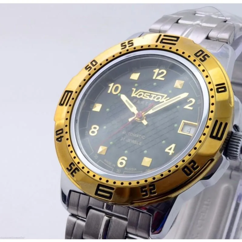 Мужские наручные часы Восток Командирские 311238. Механические с автоподзаводом. Пружина механизма заводится автоматически благодаря естественным движениям владельца в процессе ежедневной носки часов. Корпус изготовлен из высококачественной нержавеющей стали 316L с высокими антикоррозийными свойствами. На стрелки и отметки нанесен светонакопительный состав, благодаря этому считывать информацию с циферблата возможно и в темноте. На циферблате отображается текущее число месяца. Браслет из нержавеющей стали. Прочное, устойчивое к царапинам минеральное стекло защищает часы от повреждений. Часы являются водонепроницаемыми до 3 Бар. Цвет корпуса: Двухцветный. Цвет циферблата: Черный. Ширина (с заводной головкой): 42мм. Толщина: 13мм. Гарантия: 1 год.