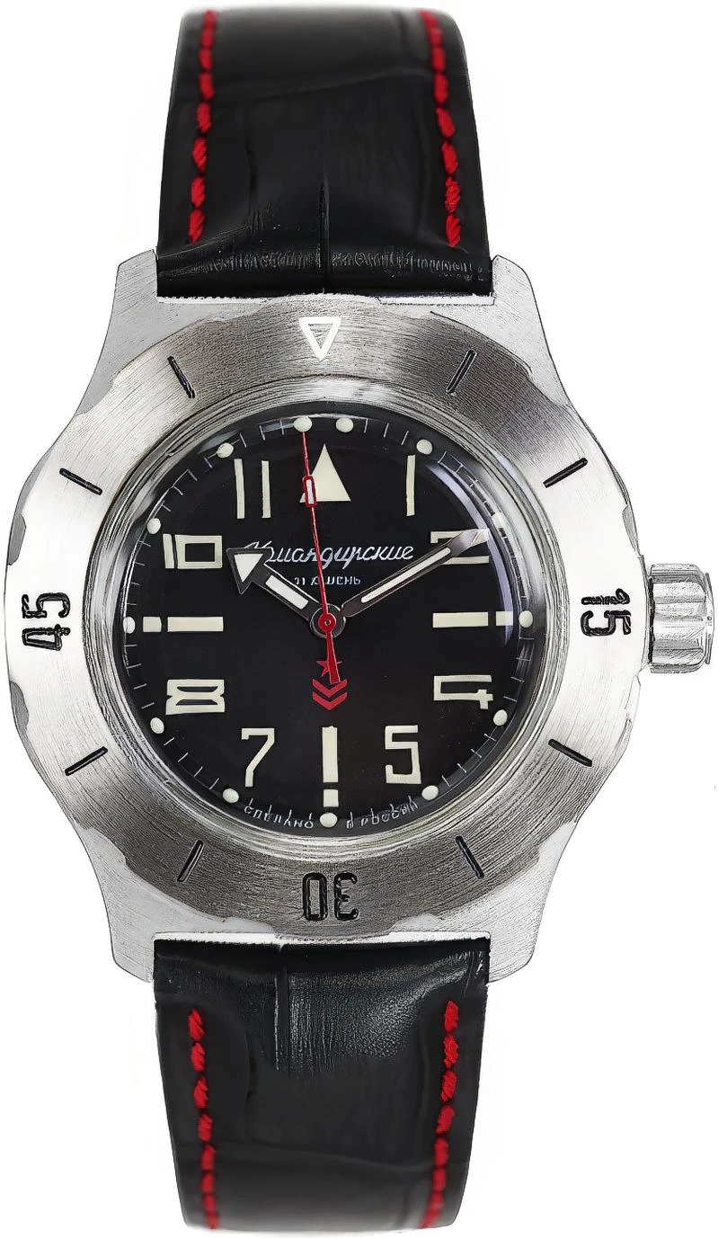 Мужские наручные часы Восток Командирские 350747. Автоматические с ручным подзаводом. Пружина механизма заводится автоматически благодаря естественным движениям владельца в процессе ежедневной носки часов. Также есть возможность ручного завода. Корпус изготовлен из высококачественной нержавеющей стали 316L с высокими антикоррозийными свойствами. На стрелки и отметки нанесен светонакопительный состав, благодаря этому считывать информацию с циферблата возможно и в темноте. Текстильный ремешок. Органическое стекло. Часы являются водонепроницаемыми до 10 Бар. Цвет корпуса: Двухцветный. Цвет циферблата: Черный. Ширина (с заводной головкой): 42мм. Толщина: 15мм. Гарантия: 1 год.