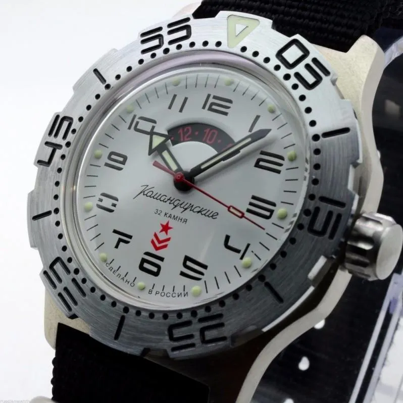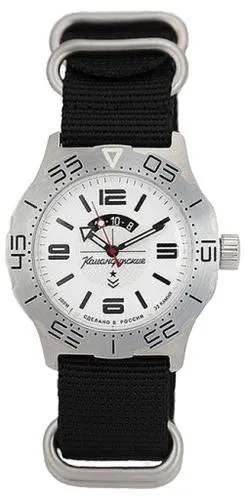 Мужские наручные часы Восток Командирские 350757. Механические с автоподзаводом. Пружина механизма заводится автоматически благодаря естественным движениям владельца в процессе ежедневной носки часов. Корпус изготовлен из высококачественной нержавеющей стали 316L с высокими антикоррозийными свойствами. На стрелки и отметки нанесен светонакопительный состав, благодаря этому считывать информацию с циферблата возможно и в темноте. Текстильный ремешок. Органическое стекло. Часы являются водонепроницаемыми до 10 Бар. Цвет корпуса: Серебристый. Цвет циферблата: Белый. Ширина (с заводной головкой): 42мм. Толщина: 15мм. Гарантия: 1 год.