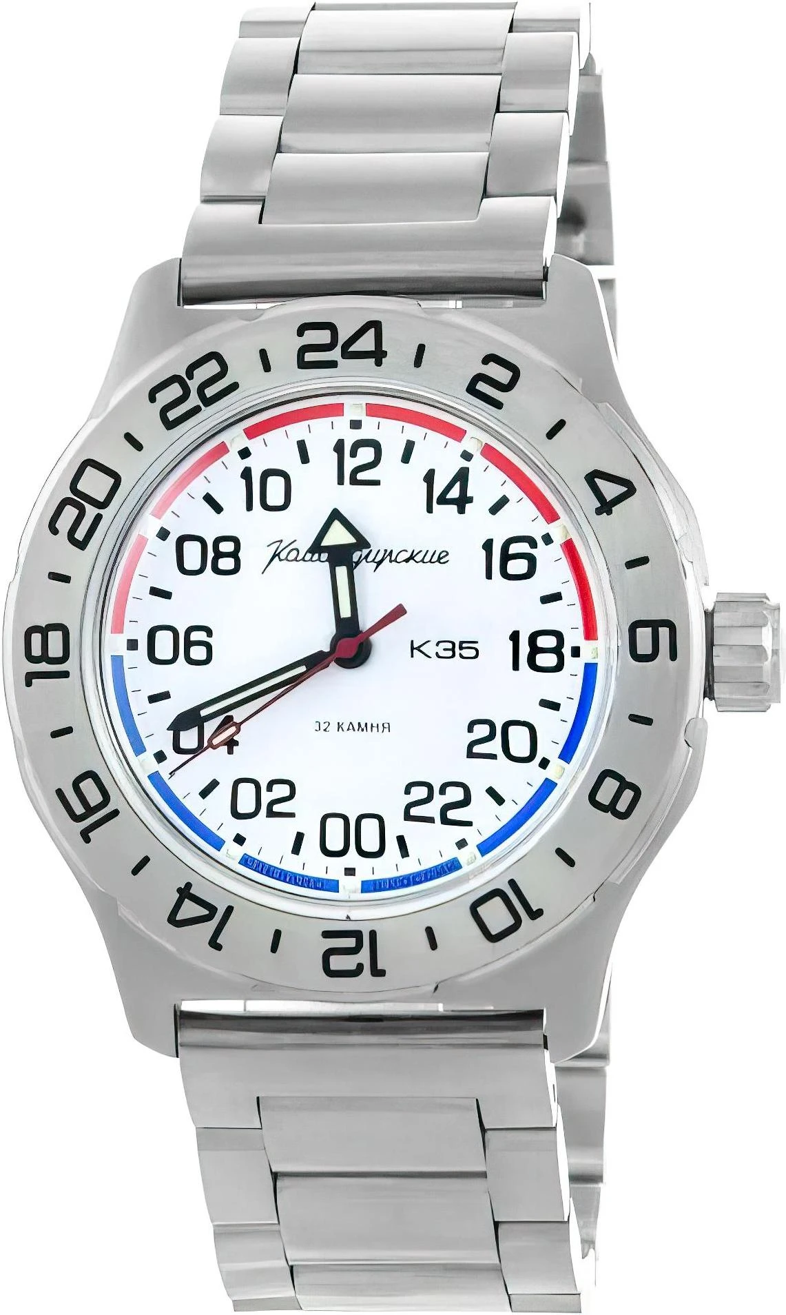 Мужские наручные часы Восток Командирские 35084А. Механические с ручным подзаводом. Браслет из нержавеющей стали. Браслет из нержавеющей стали. Органическое стекло. Часы являются водонепроницаемыми до 10 Бар. Цвет циферблата: Серебристый. Цвет корпуса: Белый. На стрелки и отметки нанесен светонакопительный состав, благодаря этому считывать информацию с циферблата возможно и в темноте. Толщина: 15 мм. Гарантия: 1 год.