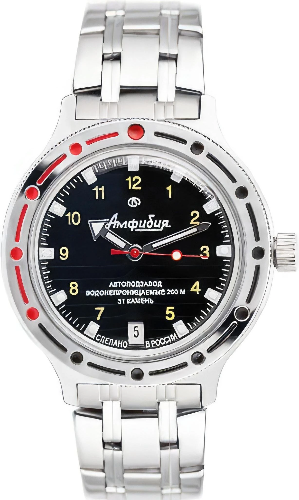Мужские наручные часы Восток Командирские 420270. Автоматические с ручным подзаводом. Пружина механизма заводится автоматически благодаря естественным движениям владельца в процессе ежедневной носки часов. Также есть возможность ручного завода. Корпус изготовлен из высококачественной нержавеющей стали 316L с высокими антикоррозийными свойствами. На стрелки и отметки нанесен светонакопительный состав, благодаря этому считывать информацию с циферблата возможно и в темноте. На циферблате отображается текущее число месяца. Браслет из нержавеющей стали. Органическое стекло. Часы являются водонепроницаемыми до 20 Бар. Цвет корпуса: Серебристый. Цвет циферблата: Черный. Ширина (с заводной головкой): 40мм. Толщина: 10мм. Гарантия: 1 год.