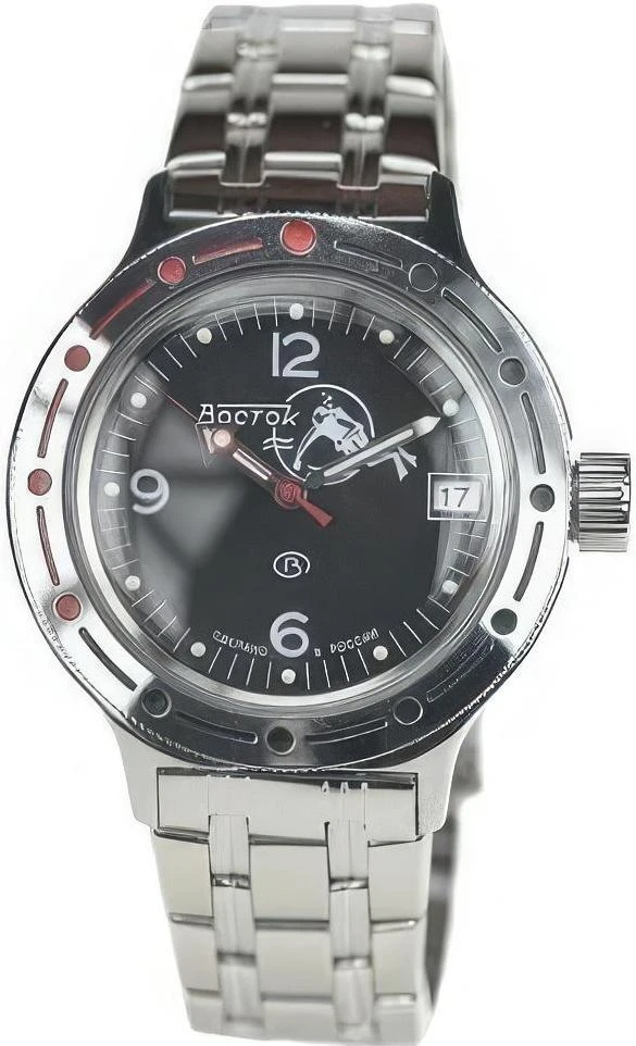 Мужские наручные часы Восток Командирские 420634. Автоматические с ручным подзаводом. Пружина механизма заводится автоматически благодаря естественным движениям владельца в процессе ежедневной носки часов. Также есть возможность ручного завода. Корпус изготовлен из высококачественной нержавеющей стали 316L с высокими антикоррозийными свойствами. На стрелки и отметки нанесен светонакопительный состав, благодаря этому считывать информацию с циферблата возможно и в темноте. На циферблате отображается текущее число месяца. Браслет из нержавеющей стали. Органическое стекло. Часы являются водонепроницаемыми до 20 Бар. Цвет корпуса: Серебристый. Цвет циферблата: Черный. Ширина (с заводной головкой): 42мм. Толщина: 15мм. Гарантия: 1 год.