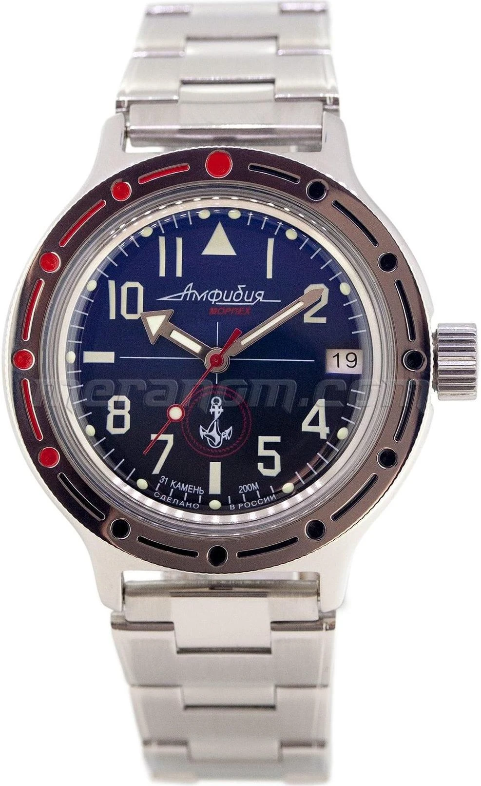 Мужские наручные часы Восток Командирские 420957. Автоматические с ручным подзаводом. Пружина механизма заводится автоматически благодаря естественным движениям владельца в процессе ежедневной носки часов. Также есть возможность ручного завода. Корпус изготовлен из высококачественной нержавеющей стали 316L с высокими антикоррозийными свойствами. На стрелки и отметки нанесен светонакопительный состав, благодаря этому считывать информацию с циферблата возможно и в темноте. На циферблате отображается текущее число месяца. Браслет из нержавеющей стали. Органическое стекло. Часы являются водонепроницаемыми до 3 Бар. Цвет циферблата: Синий. Ширина (с заводной головкой): 42мм. Толщина: 11мм. Гарантия: 1 год.