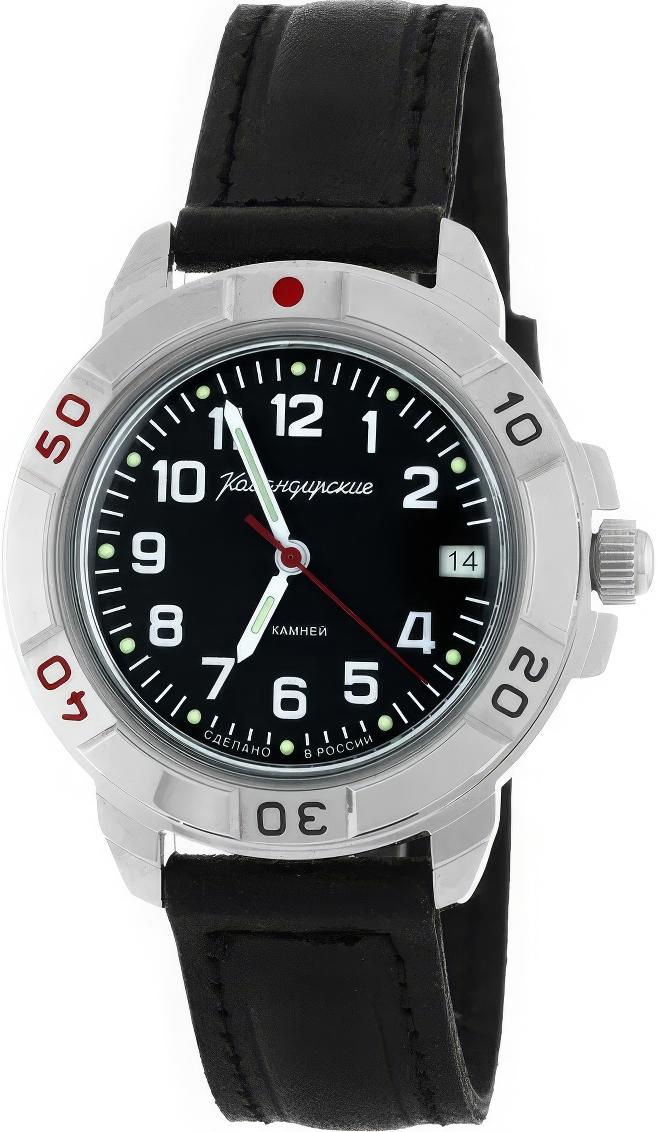 Мужские наручные часы Восток Командирские 43184Б. Механические с ручным подзаводом. Ремешок изготовлен из кожи. Латунный браслет. Органическое стекло. На циферблате отображается текущее число месяца. Часы являются водонепроницаемыми до 3 Бар. Цвет циферблата: Серебристый. Цвет корпуса: Черный. На стрелки и отметки нанесен светонакопительный состав, благодаря этому считывать информацию с циферблата возможно и в темноте. Толщина: 12 мм. Гарантия: 1 год.