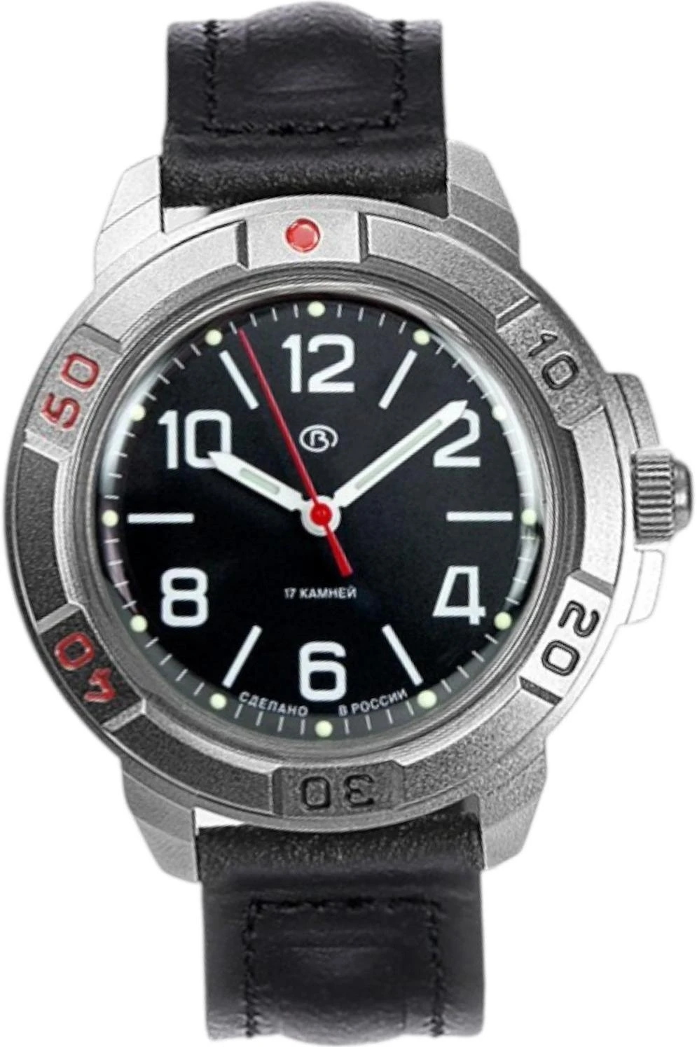 Мужские наручные часы Восток Командирские 43613В. Механические с ручным подзаводом. Завод осуществляется через систему шестерней, передающих вращение с головки на заводной барабан. Механизм включает предохранительную систему, предотвращающую перезавод главной пружины.Ремешок изготовлен из кожи. Гибкость такого ремешка позволяет точно регулировать посадку часов на руке. Ударопрочная конструкция часов защищает от ударов и вибрации. Корпус изготовлен из высококачественной часовой латуни с высокими антикоррозийными свойствами. Органическое стекло. Часы являются водонепроницаемыми до 3 Бар. Цвет корпуса: Серебристый. Цвет циферблата: Черный. Высота (с ушками): 46.5 мм. Толщина: 12 мм. Гарантия: 1 год.