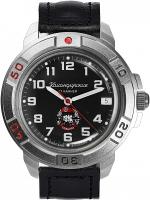 Мужские наручные часы Восток Командирские 43646Б. Механические с ручным подзаводом. Ремешок изготовлен из кожи. Браслет из нержавеющей стали. Органическое стекло. На циферблате отображается текущее число месяца. Часы являются водонепроницаемыми до 3 Бар. Цвет циферблата: Серебристый. Цвет корпуса: Черный. На стрелки и отметки нанесен светонакопительный состав, благодаря этому считывать информацию с циферблата возможно и в темноте. Толщина: 12 мм. Гарантия: 1 год.