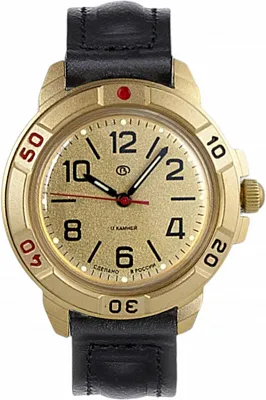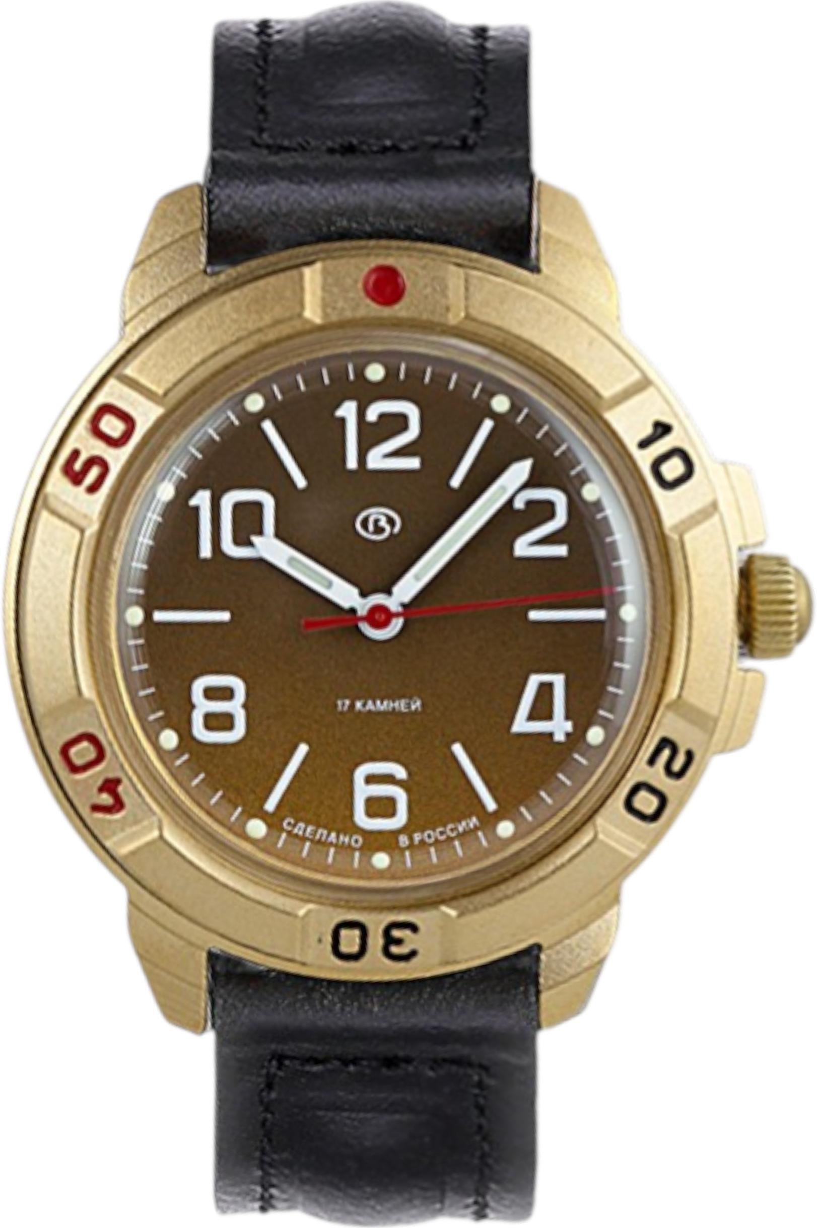 Мужские наручные часы Восток Командирские 43712В. Механические с ручным подзаводом. Завод осуществляется через систему шестерней, передающих вращение с головки на заводной барабан. Механизм включает предохранительную систему, предотвращающую перезавод главной пружины.На стрелки и отметки нанесен светонакопительный состав, благодаря этому считывать информацию с циферблата возможно и в темноте. Ремешок изготовлен из кожи. Гибкость такого ремешка позволяет точно регулировать посадку часов на руке. Ударопрочная конструкция часов защищает от ударов и вибрации. Корпус изготовлен из высококачественной часовой латуни с высокими антикоррозийными свойствами. Органическое стекло. Часы являются водонепроницаемыми до 3 Бар. Цвет корпуса: Желтое золото. Цвет циферблата: Коричневый. Высота (с ушками): 46.5 мм. Толщина: 12 мм. Гарантия: 1 год.