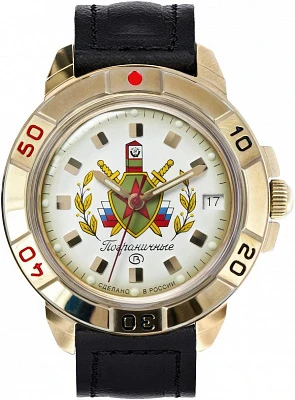 Мужские наручные часы Восток Командирские 439564. Механические с ручным подзаводом. Корпус изготовлен из высококачественной часовой латуни с высокими антикоррозийными свойствами. На стрелки и отметки нанесен светонакопительный состав, благодаря этому считывать информацию с циферблата возможно и в темноте. На циферблате отображается текущее число месяца. Ремешок изготовлен из кожи. Прочное, устойчивое к царапинам минеральное стекло защищает часы от повреждений.Часы являются водонепроницаемыми до 3 Бар. Цвет корпуса: Желтое золото. Цвет циферблата: Золотистый. Ширина (с заводной головкой): 40мм. Толщина: 10мм. Гарантия: 1 год.