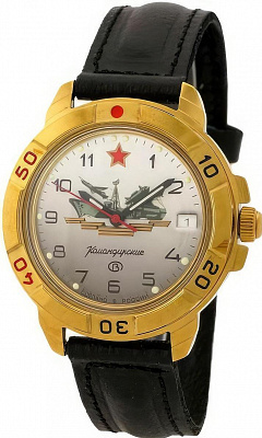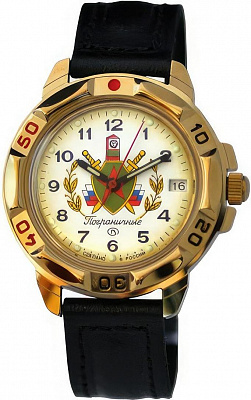 Мужские наручные часы Восток Командирские 43985Б. Механические с ручным подзаводом. Ремешок изготовлен из кожи. Латунный браслет. Органическое стекло. На циферблате отображается текущее число месяца. Часы являются водонепроницаемыми до 3 Бар. Цвет циферблата: Желтое золото. Цвет корпуса: Черный. На стрелки и отметки нанесен светонакопительный состав, благодаря этому считывать информацию с циферблата возможно и в темноте. Толщина: 12 мм. Гарантия: 1 год.
