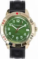Мужские наручные часы Восток Командирские 43986Б. Механические с ручным подзаводом. Ремешок изготовлен из кожи. Латунный браслет. Органическое стекло. На циферблате отображается текущее число месяца. Часы являются водонепроницаемыми до 3 Бар. Цвет циферблата: Желтое золото. Цвет корпуса: Зеленый. На стрелки и отметки нанесен светонакопительный состав, благодаря этому считывать информацию с циферблата возможно и в темноте. Толщина: 12 мм. Гарантия: 1 год.