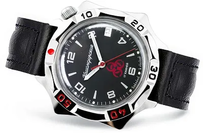 Мужские наручные часы Восток Командирские 53123Б. Механические с ручным подзаводом. Ремешок изготовлен из кожи. Браслет из нержавеющей стали. Органическое стекло. На циферблате отображается текущее число месяца. Часы являются водонепроницаемыми до 3 Бар. Цвет циферблата: Серебристый. Цвет корпуса: Синий. На стрелки и отметки нанесен светонакопительный состав, благодаря этому считывать информацию с циферблата возможно и в темноте. Толщина: 12 мм. Гарантия: 1 год.