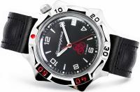 Мужские наручные часы Восток Командирские 53127Б. Механические с ручным подзаводом. Ремешок изготовлен из кожи. Браслет из нержавеющей стали. Органическое стекло. На циферблате отображается текущее число месяца. Часы являются водонепроницаемыми до 3 Бар. Цвет циферблата: Серебристый. Цвет корпуса: Черный. На стрелки и отметки нанесен светонакопительный состав, благодаря этому считывать информацию с циферблата возможно и в темноте. Толщина: 12 мм. Гарантия: 1 год.