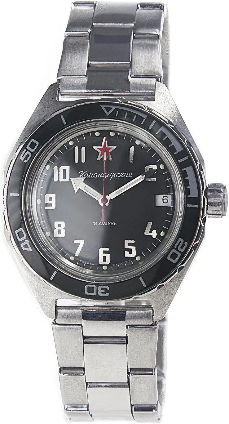 Мужские наручные часы Восток Командирские 650537. Автоматические с ручным подзаводом. Пружина механизма заводится автоматически благодаря естественным движениям владельца в процессе ежедневной носки часов. Также есть возможность ручного завода. Корпус изготовлен из высококачественной нержавеющей стали 316L с высокими антикоррозийными свойствами. На стрелки и отметки нанесен светонакопительный состав, благодаря этому считывать информацию с циферблата возможно и в темноте. На циферблате отображается текущее число месяца. Браслет из нержавеющей стали. Органическое стекло. Часы являются водонепроницаемыми до 20 Бар. Цвет корпуса: Серебристый. Цвет циферблата: Черный. Ширина (с заводной головкой): 41мм. Толщина: 15мм. Гарантия: 1 год.