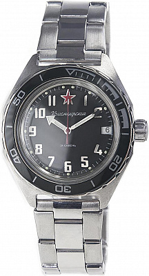 Мужские наручные часы Восток Командирские 650538. Механические с автоподзаводом. Пружина механизма заводится автоматически благодаря естественным движениям владельца в процессе ежедневной носки часов. Корпус изготовлен из высококачественной нержавеющей стали 316L с высокими антикоррозийными свойствами. На стрелки и отметки нанесен светонакопительный состав, благодаря этому считывать информацию с циферблата возможно и в темноте. На циферблате отображается текущее число месяца. Браслет из нержавеющей стали. Органическое стекло. Часы являются водонепроницаемыми до 20 Бар. Цвет корпуса: Серый. Цвет циферблата: Черный. Ширина (с заводной головкой): 41мм. Толщина: 15мм. Гарантия: 1 год.