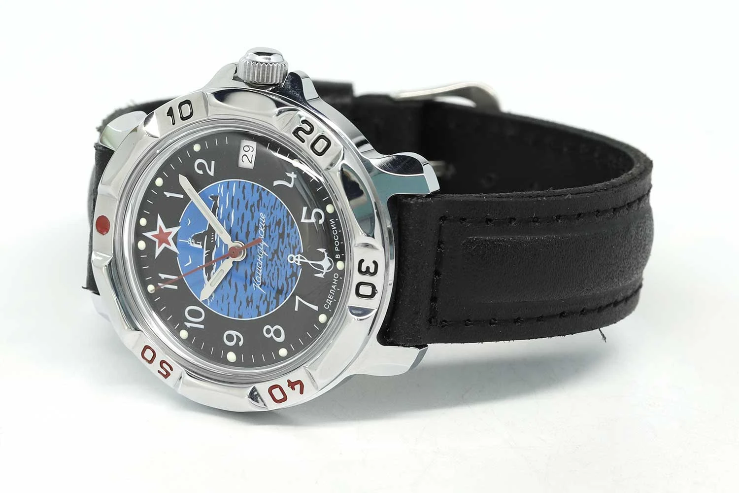 Мужские наручные часы Восток Командирские 811163. Механические с ручным подзаводом. Корпус изготовлен из высококачественной часовой латуни с высокими антикоррозийными свойствами. На стрелки и отметки нанесен светонакопительный состав, благодаря этому считывать информацию с циферблата возможно и в темноте. На циферблате отображается текущее число месяца. Ремешок изготовлен из кожи. Прочное, устойчивое к царапинам минеральное стекло защищает часы от повреждений.Часы являются водонепроницаемыми до 3 Бар. Цвет корпуса: Двухцветный. Цвет циферблата: Синий. Ширина (с заводной головкой): 40мм. Толщина: 10мм. Гарантия: 1 год.