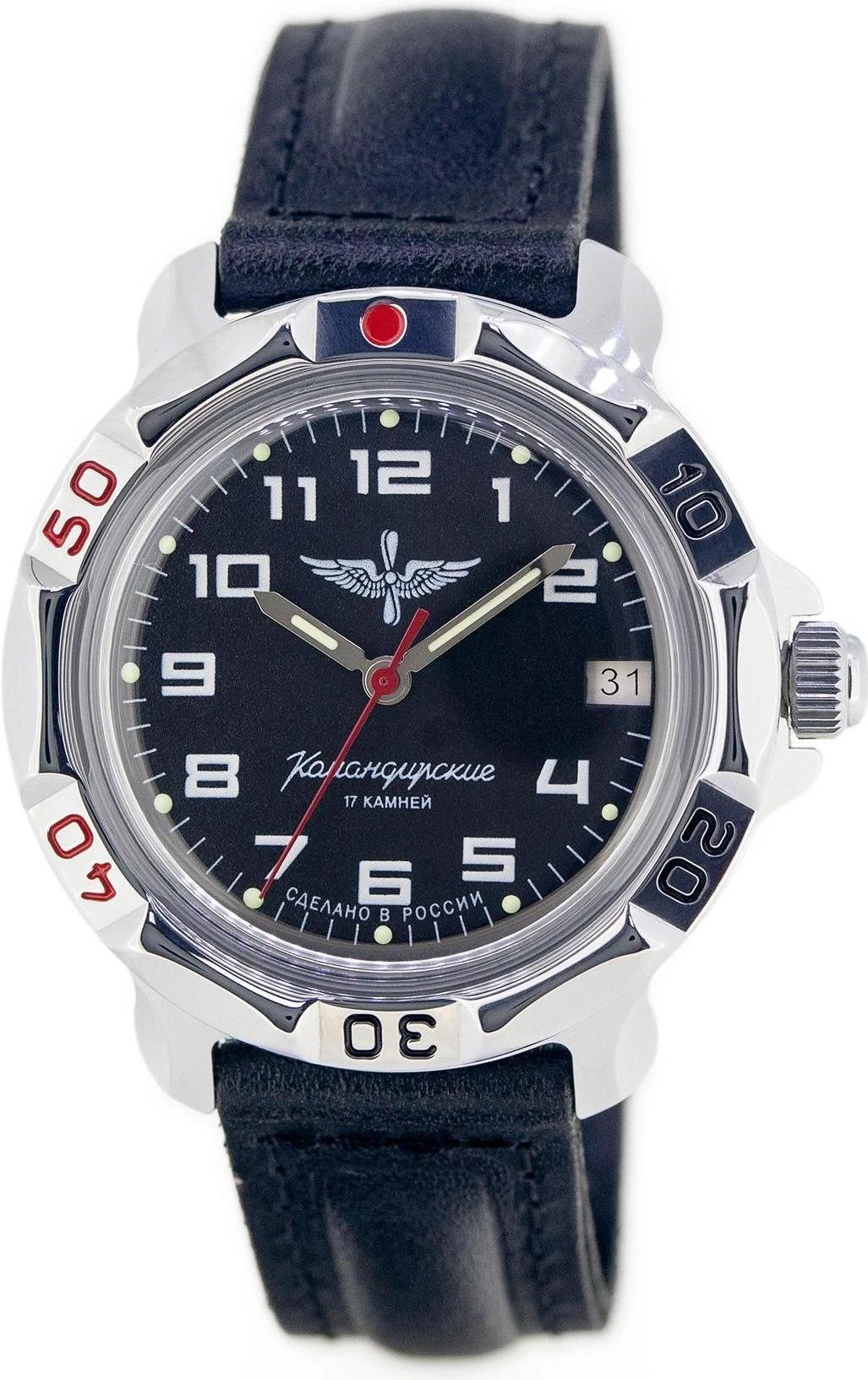 Мужские наручные часы Восток Командирские 811941. Механические с ручным подзаводом. Корпус изготовлен из высококачественной часовой латуни с высокими антикоррозийными свойствами. На стрелки и отметки нанесен светонакопительный состав, благодаря этому считывать информацию с циферблата возможно и в темноте. На циферблате отображается текущее число месяца. Ремешок изготовлен из кожи. Органическое стекло. Часы являются водонепроницаемыми до 3 Бар. Цвет корпуса: Черный. Цвет циферблата: Синий. Ширина (с заводной головкой): 42мм. Толщина: 15мм. Гарантия: 1 год.