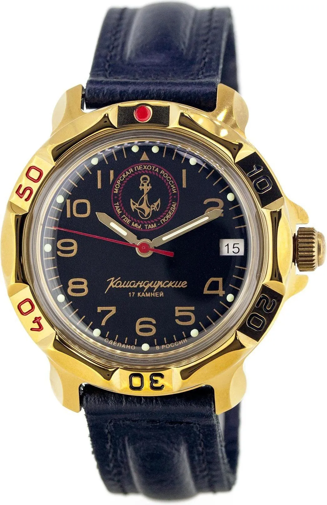 Мужские наручные часы Восток Командирские 819955. Механические с ручным подзаводом. Корпус изготовлен из высококачественной часовой латуни с высокими антикоррозийными свойствами. На стрелки и отметки нанесен светонакопительный состав, благодаря этому считывать информацию с циферблата возможно и в темноте. На циферблате отображается текущее число месяца. Ремешок изготовлен из кожи. Органическое стекло. Часы являются водонепроницаемыми до 3 Бар. Ширина (с заводной головкой): 42мм. Толщина: 15мм. Гарантия: 1 год.