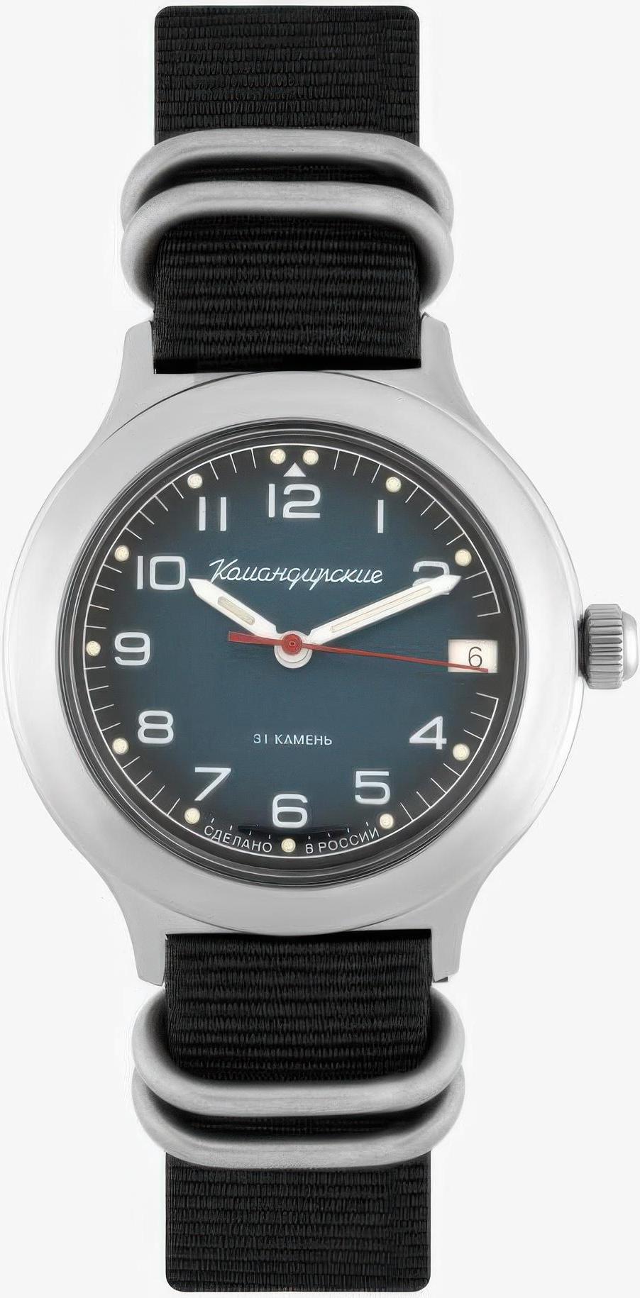 Мужские наручные часы Восток Командирские 92174Б. Механические с ручным подзаводом. Текстильный ремешок. Ударопрочная конструкция часов защищает от ударов и вибрации. После настройки автоматический календарь всегда отображает точную дату. Латунный браслет. Органическое стекло. На циферблате отображается текущее число месяца. Часы являются водонепроницаемыми до 3 Бар. Цвет циферблата: Серебристый. Цвет корпуса: Синий. Цвет корпуса: Черный. На стрелки и отметки нанесен светонакопительный состав, благодаря этому считывать информацию с циферблата возможно и в темноте. Толщина: 15 мм. Гарантия: 1 год.