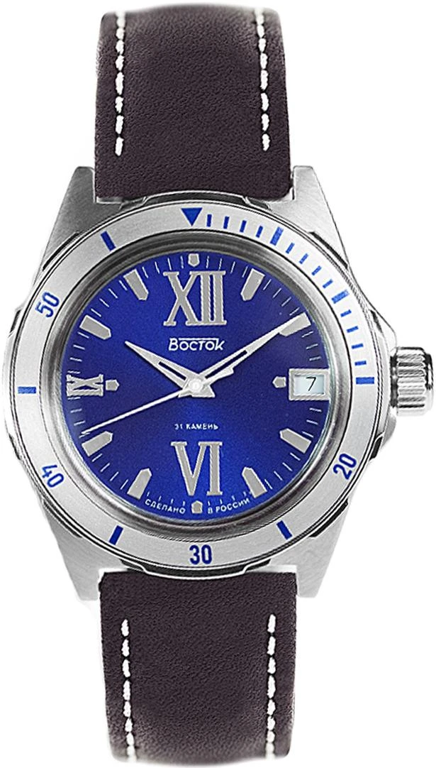 Мужские наручные часы Восток Мегаполис 75012А. Механические с ручным подзаводом. Ремешок изготовлен из кожи. Ударопрочная конструкция часов защищает от ударов и вибрации. Аккумулятор обеспечивает часы достаточным питанием приблизительно на 10 лет. Браслет из нержавеющей стали. Прочное, устойчивое к царапинам минеральное стекло защищает часы от повреждений. На циферблате отображается текущее число месяца. Часы являются водонепроницаемыми до 3 Бар. Цвет циферблата: Серебристый. Цвет корпуса: Синий. Высота (с ушками): 45 мм. Толщина: 15 мм. Гарантия: 1 год.