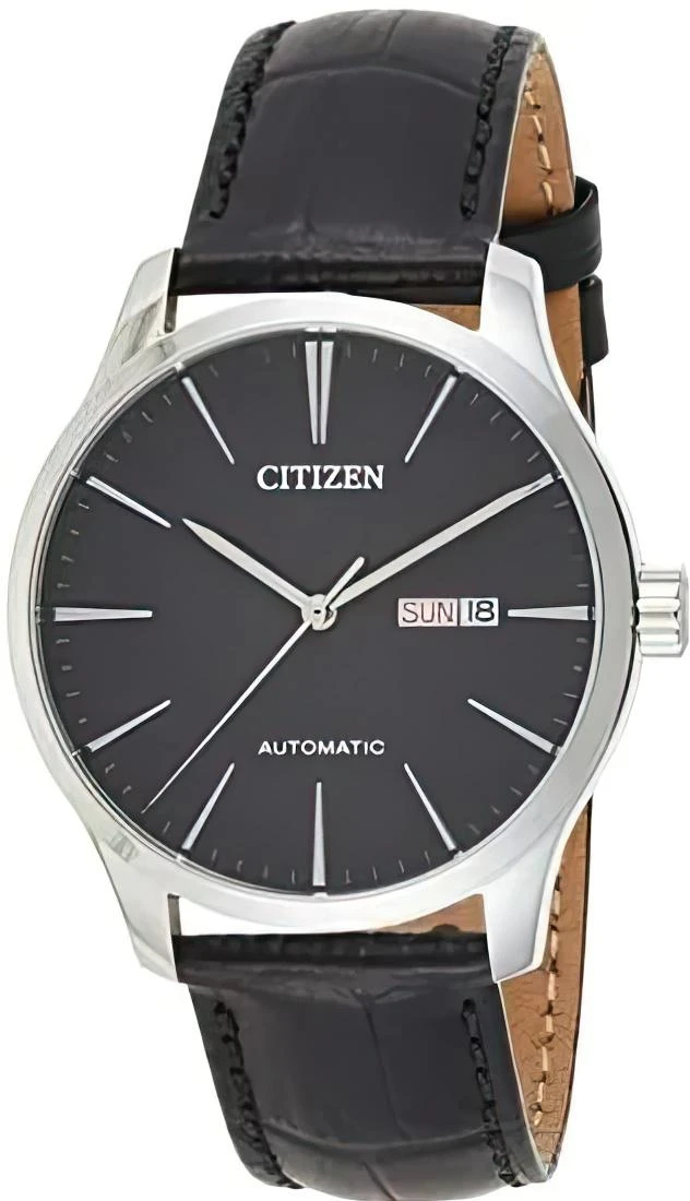 Мужские наручные часы Citizen Citizen Automatic NH8350-08E. Механические с ручным подзаводом. Корпус изготовлен из высококачественной нержавеющей стали 316L с высокими антикоррозийными свойствами. На циферблате отображается текущее число месяца и день недели. Ремешок изготовлен из кожи. Прочное, устойчивое к царапинам минеральное стекло защищает часы от повреждений. Часы являются водонепроницаемыми до 5 Бар. Цвет корпуса: Серебристый. Цвет циферблата: Черный. Ширина (с заводной головкой): 40мм. Толщина: 11мм. Гарантия: 2 года.