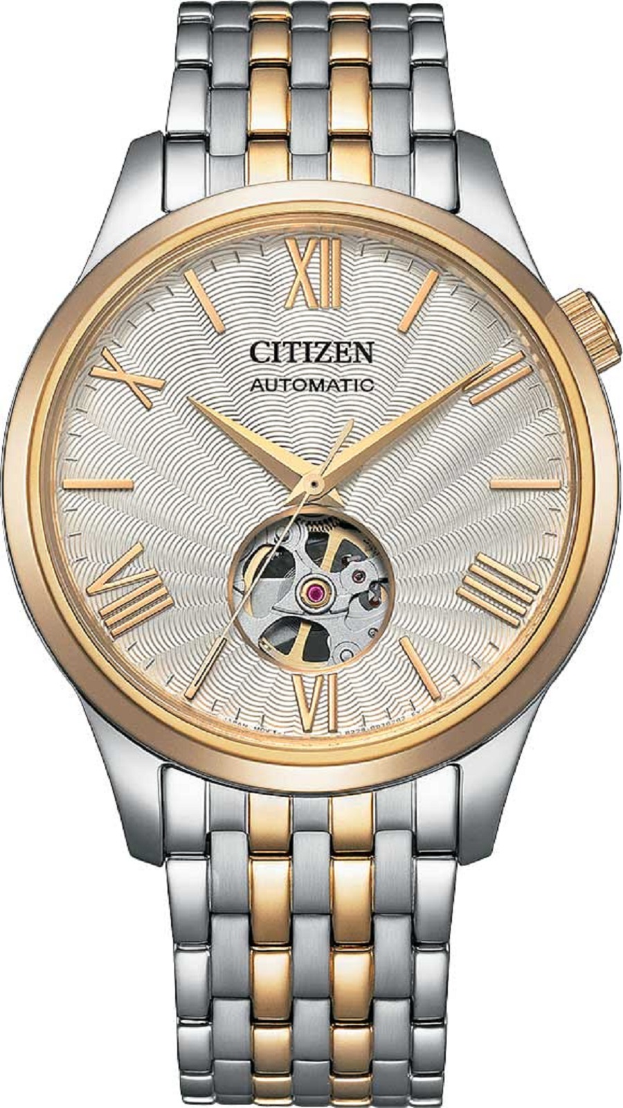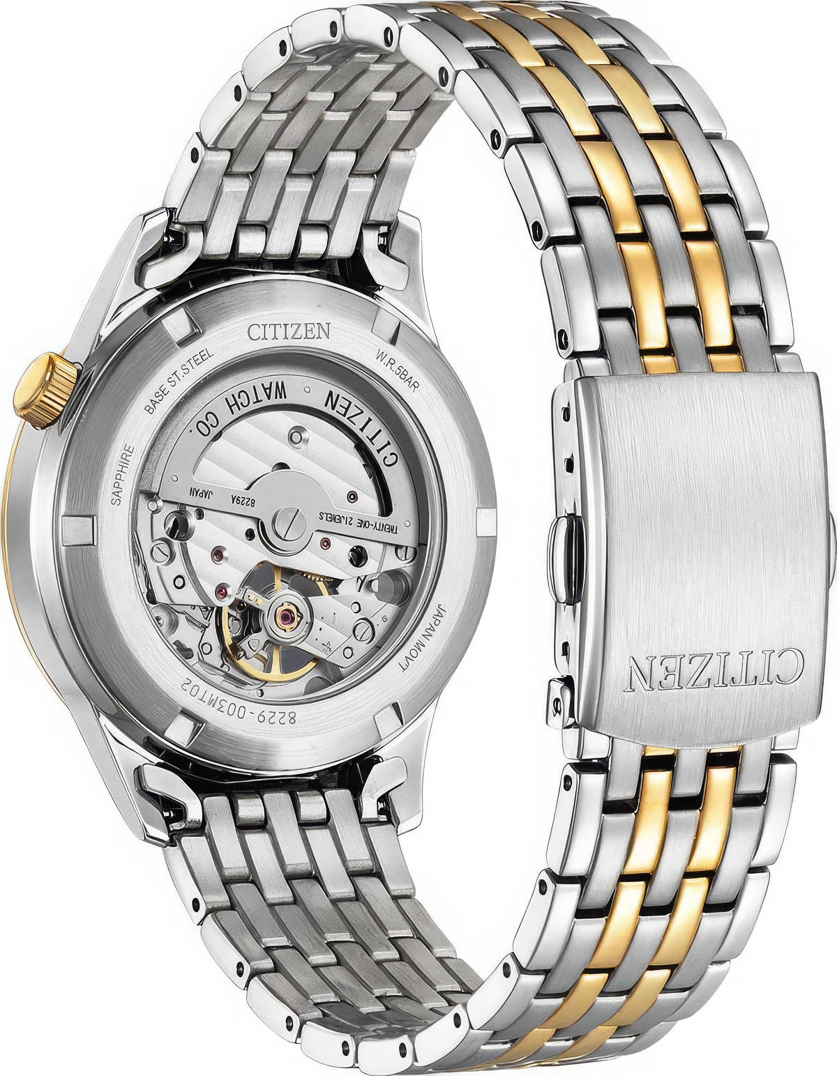 Мужские наручные часы Citizen Automatic NH9136-88A. Механические с автоподзаводом. Пружина механизма заводится автоматически благодаря естественным движениям владельца в процессе ежедневной носки часов. Браслет из нержавеющей стали. Браслет из нержавеющей стали. Сапфировое стекло. Искусственно изготовленное стекло с высокой прочностью и устойчивостью к царапинам. Часы являются водонепроницаемыми до 5 Бар. Цвет циферблата: Желтое золото. Цвет корпуса: Серебристый. Толщина: 11 мм. Гарантия: 2 года.