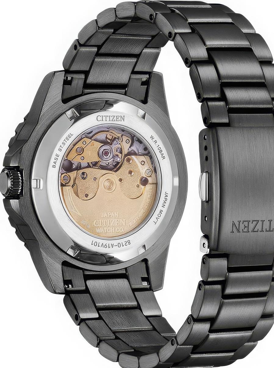 Мужские наручные часы Citizen Automatic NJ0177-84X. Механические с автоподзаводом. Пружина механизма заводится автоматически благодаря естественным движениям владельца в процессе ежедневной носки часов. Браслет из нержавеющей стали. Браслет из нержавеющей стали. Прочное, устойчивое к царапинам минеральное стекло защищает часы от повреждений. На циферблате отображается текущее число месяца. Часы являются водонепроницаемыми до 10 Бар. Цвет циферблата: Серый. Цвет корпуса: Зеленый. На стрелки и отметки нанесен светонакопительный состав, благодаря этому считывать информацию с циферблата возможно и в темноте. Толщина: 12 мм. Гарантия: 2 года.