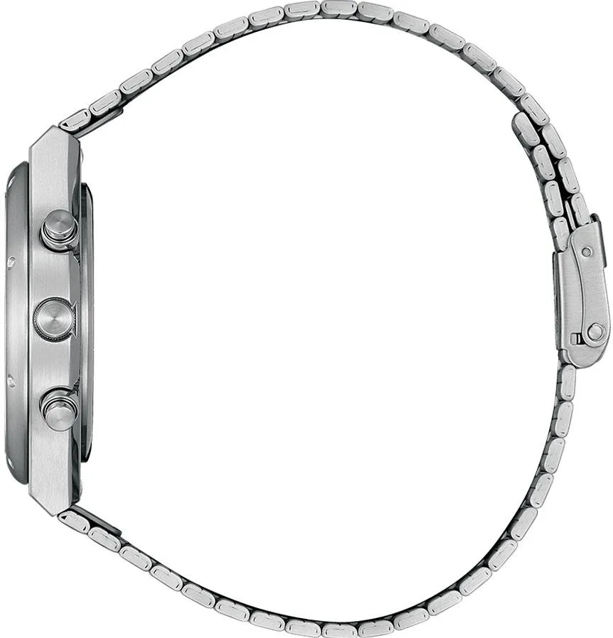 Мужские наручные часы Citizen Eco-Drive Chrono AT2541-54A. Точный кварцевый механизм. Браслет из нержавеющей стали. Функция хронографа. Солнечная батарейка. Солнечная подзаряжающаяся батарейка обеспечивает питание часов для работы. Отображение времени возможно в 12-часовом или 24-часовом формате. Корпус изготовлен из высококачественной нержавеющей стали 316L с высокими антикоррозийными свойствами. Прочное, устойчивое к царапинам минеральное стекло защищает часы от повреждений. На циферблате отображается текущее число месяца. Часы являются водонепроницаемыми до 5 Бар. Цвет циферблата: Серебристый. Цвет корпуса: Белый. Цвет корпуса: Черный. Светодиодная подсветка. Толщина: 9.35 мм. Гарантия: 2 года.