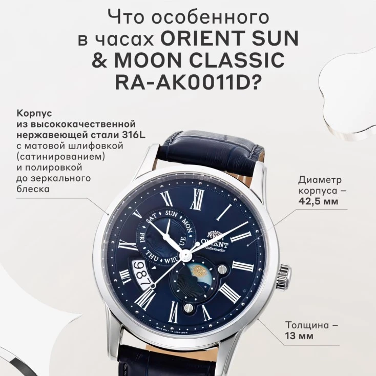 • Корпус и браслет выполнены из нержавеющей стали 316L, поверхности имеют матовую шлифовку (сатинирование) или полировку до зеркального блеска.