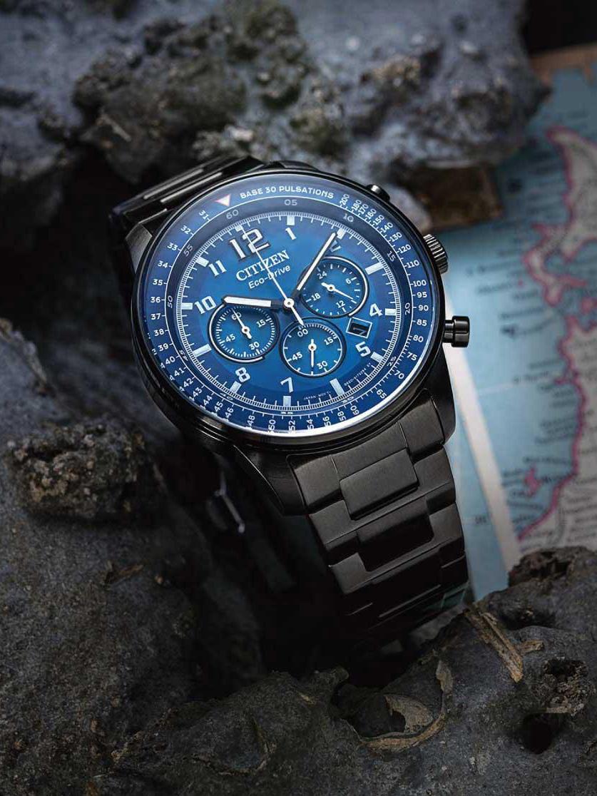 Мужские наручные часы Citizen Eco Drive CA4505-80L. Точный кварцевый механизм с аналоговой индикацией. Браслет из нержавеющей стали. Функция хронографа. Солнечная батарейка. Солнечная подзаряжающаяся батарейка обеспечивает питание часов для работы. Отображение времени возможно в 12-часовом или 24-часовом формате. Браслет из нержавеющей стали. Прочное, устойчивое к царапинам минеральное стекло защищает часы от повреждений. На циферблате отображается текущее число месяца. Часы являются водонепроницаемыми до 10 Бар. Цвет циферблата: Черный. Цвет корпуса: Синий. На стрелки и отметки нанесен светонакопительный состав, благодаря этому считывать информацию с циферблата возможно и в темноте. Толщина: 13 мм. Гарантия: 2 года.