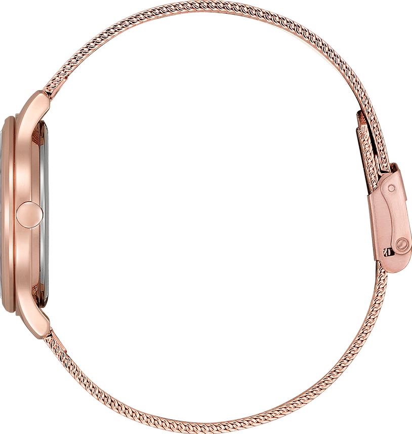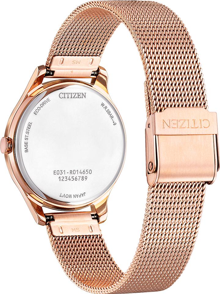 Женские кварцевые часы с механизмом Eco-Drive калибра E031 работают на солнечной энергии и не требуют замены батарейки. Модель с серебристым циферблатом, украшенным арабскими цифрами и метками, оснащена центральными часовой, минутной и секундной стрелками. Круглый корпус диаметром 32 мм и браслет выполнены из нержавеющей стали с покрытием, а циферблат защищен прочным минеральным стеклом, устойчивым к царапинам. Общий вес часов составляет 45 грамм.