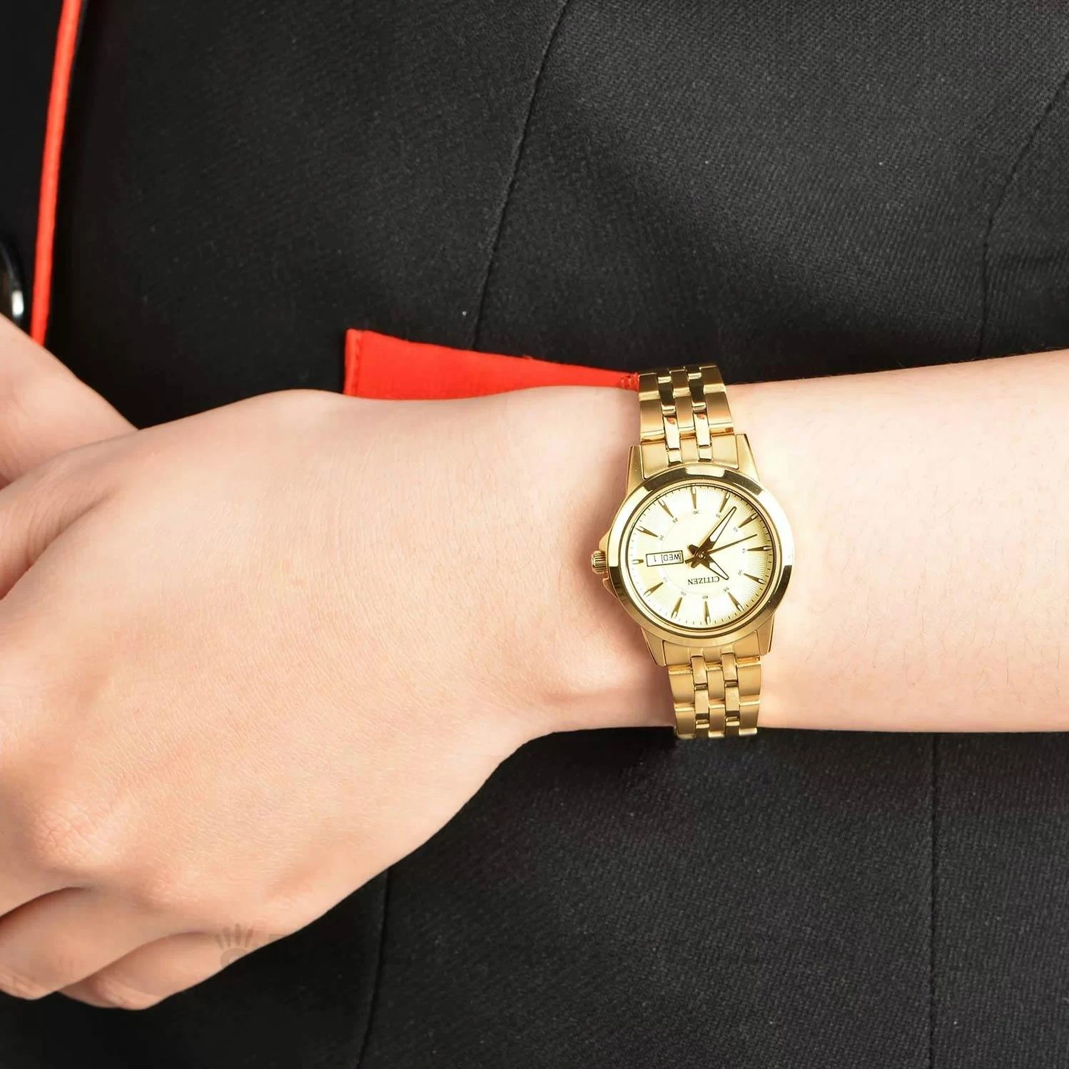 Женские наручные часы Citizen Eco Drive EQ0603-59P. Точный кварцевый механизм. Браслет из нержавеющей стали. Корпус изготовлен из высококачественной нержавеющей стали 316L с высокими антикоррозийными свойствами. Прочное, устойчивое к царапинам минеральное стекло защищает часы от повреждений. На циферблате отображается текущее число месяца и день недели. Часы являются водонепроницаемыми до 3 Бар. Цвет циферблата: Желтое золото. Цвет корпуса: Золотистый. Светодиодная подсветка. Толщина: 8 мм. Гарантия: 2 года.